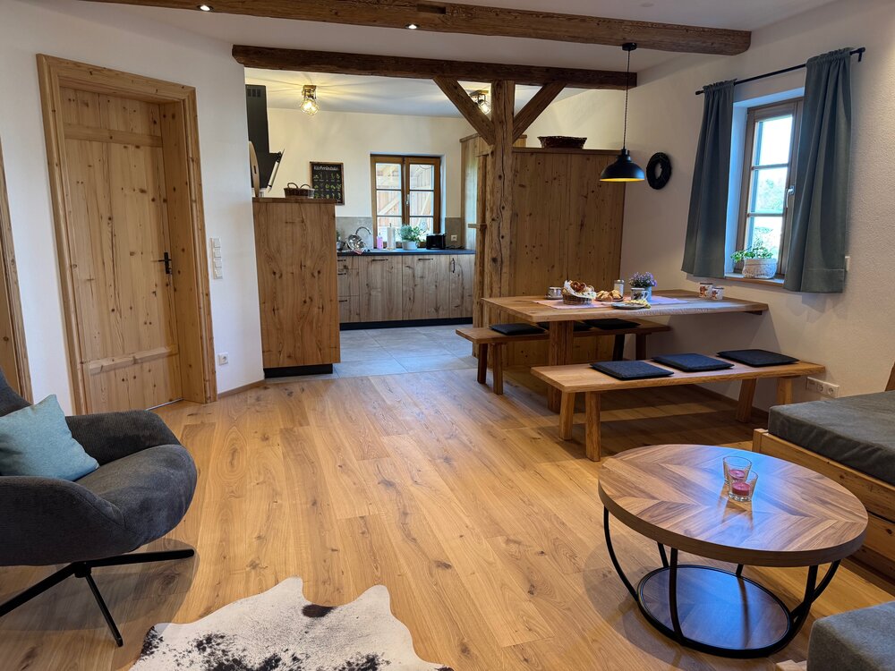 Direkt von unserem Hof aus gibt es viele Wander- und Radwege. Eine Bereicherung in unserer Gegend, sind die zahlreichen wunderschönen Seen(zum Staffelsee in 5 Minuten), Berge, Schlösser und Sehenswürdigkeiten. Unsere Wohnungen, bieten Ihnen eine Vollausstattung. Das Doppelzimmer "Kammerl" eignet sich ideal zum Zubuchen für Oma und Opa usw. Im Freien stehen einige Spielgeräte und Fahrzeuge zur Verfügung.